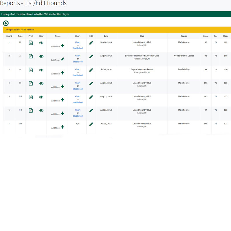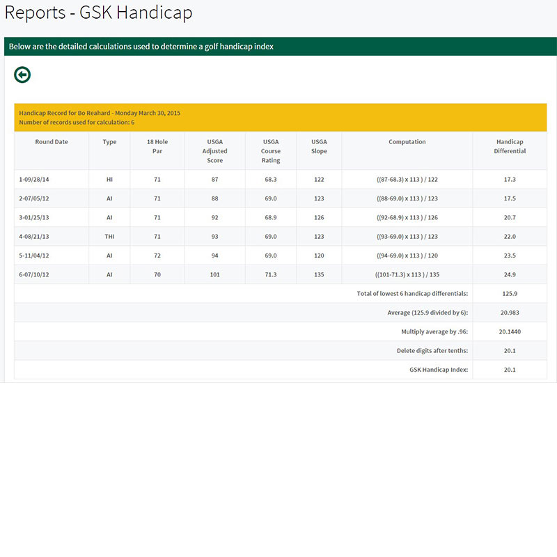 Detailed Golf Handicap Tracking