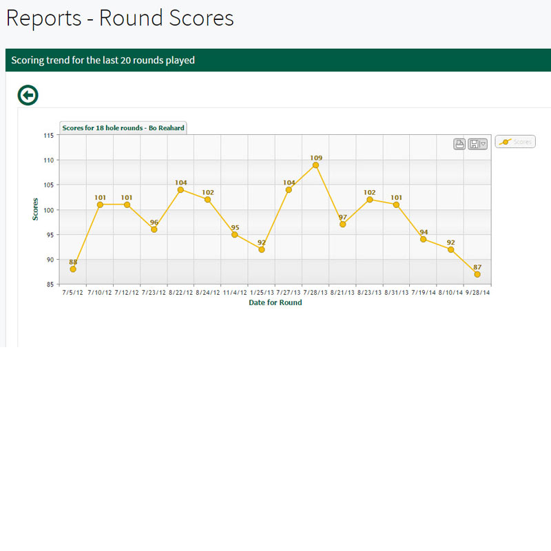 In its simplest form, Golf Score Keeper has been designed to let you login, enter your score numerically or graphically and return to your daily tasks. Of course, if you have played a new course or want to run reports or display graphs, you can stay as long as you like.